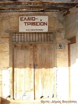 Όταν πια είχαν μαζέψει τον καρπό, τον μετέφεραν στη φάμπρικα, το “ελαιοτριβείο”, για να τον αλέσουν και να βγάλουν το λάδι.